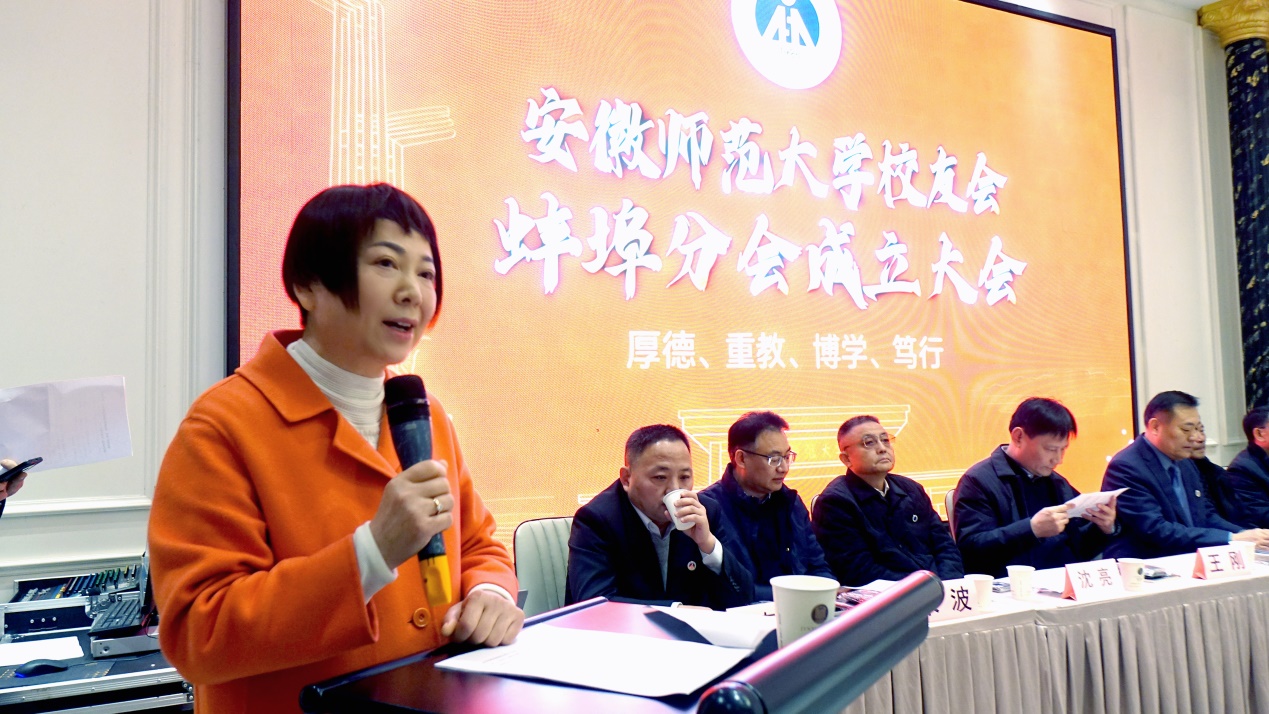 1984届数学专业校友、原蚌埠市教育局关工委副主任张杰代表蚌埠校友会筹备组向大会报告了会议筹备情况。与会人员审议并表决通过了《安徽师范大学蚌埠校友会章程(草案)》和安徽师范大学蚌埠校友会组织机构人员名单。1986届化学系校友、安徽育安实验室装备有限公司董事长袁巍当选为蚌埠校友会第一任会长,25位校友当选为第一届理事会理事。